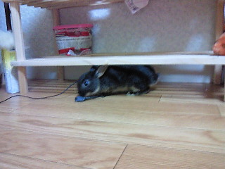 お外に出れるようになってからというもの、ケージから出してほしくて金網をガリガリしています。 だしてよーぉ 今日は、少しなら目を離してても大丈夫なように、バリケードを作って置いておくことにしました。 棚の下。 ちょっと遠くから見たら、たいした毛玉です。 だんだん体型が球形に近づいてきました。
